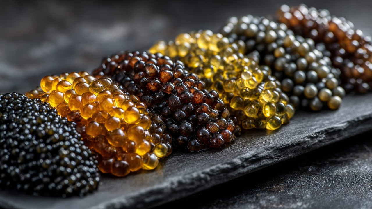 Икра осетра, как один из самых распространенных сортов, отличается средним размером зерен — около 2-3 мм в диаметре, с серебристым отливом и плотной пленкой. В продуктах из московских ферм этот сорт выглядит особенно блестящим благодаря контролируемому питанию рыбы, что придает зернам равномерный серо-черный цвет без пятен. Текстура упругая, с легким перламутром, который усиливается при освещении. Такой вид делает ее идеальной для салатов, где внешняя привлекательность важна.