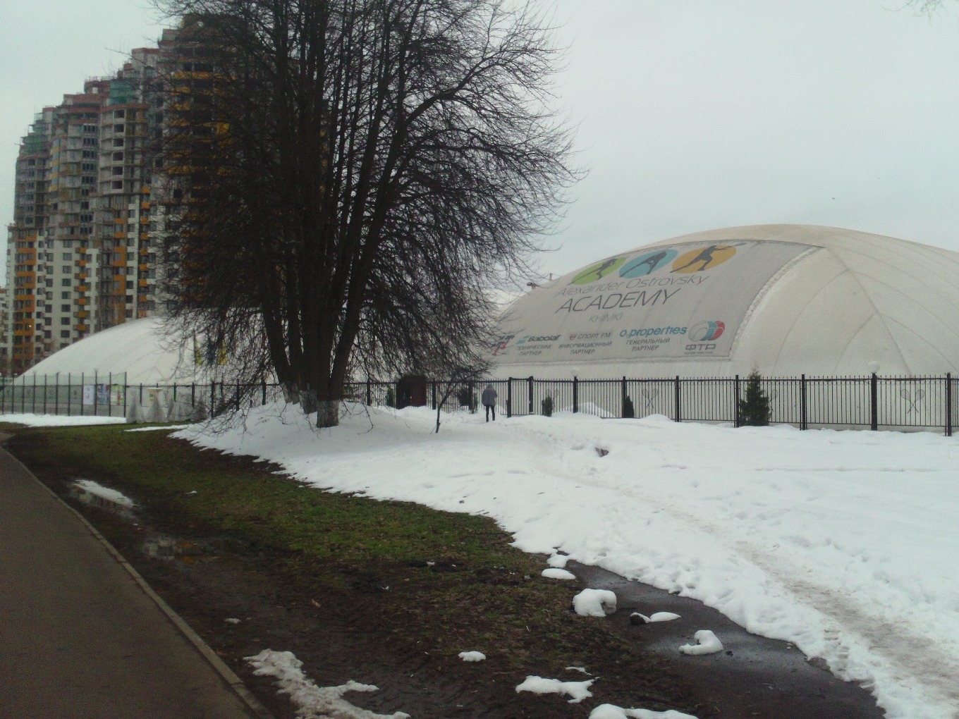 Рядом Академия тенниса, огородившая себе участок в парке и поставившая там не только крытые платные теннисные корты, но и капитальное строение (что запрещается в зеленых зонах) - "здание для временного размещения игроков".
