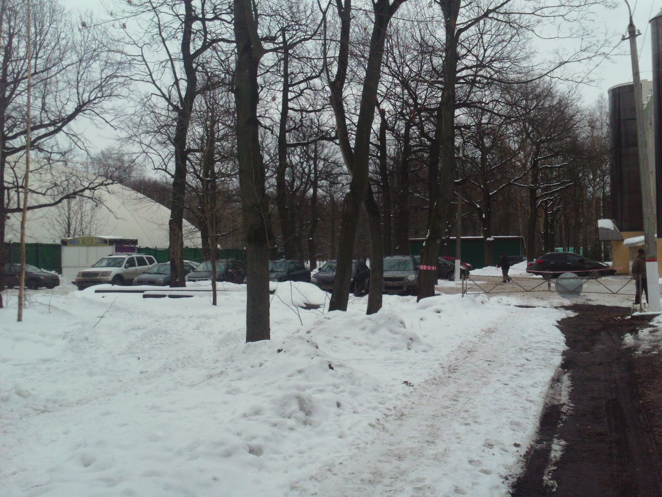 Еще одна, более крупная автостоянка - рядом с клубом "Космос", в самом центре парка. Хотя из ГИБДД официально сообщили, что согласования на стоянку и проезд машин к ней не давали, автомобили продолжают курсировать через парк и парковаться в нем.