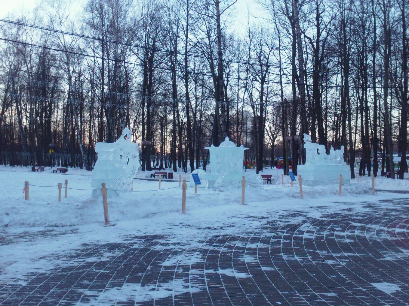 Еще развлечения для детей - ледяные фигуры, горки и лабиринт.