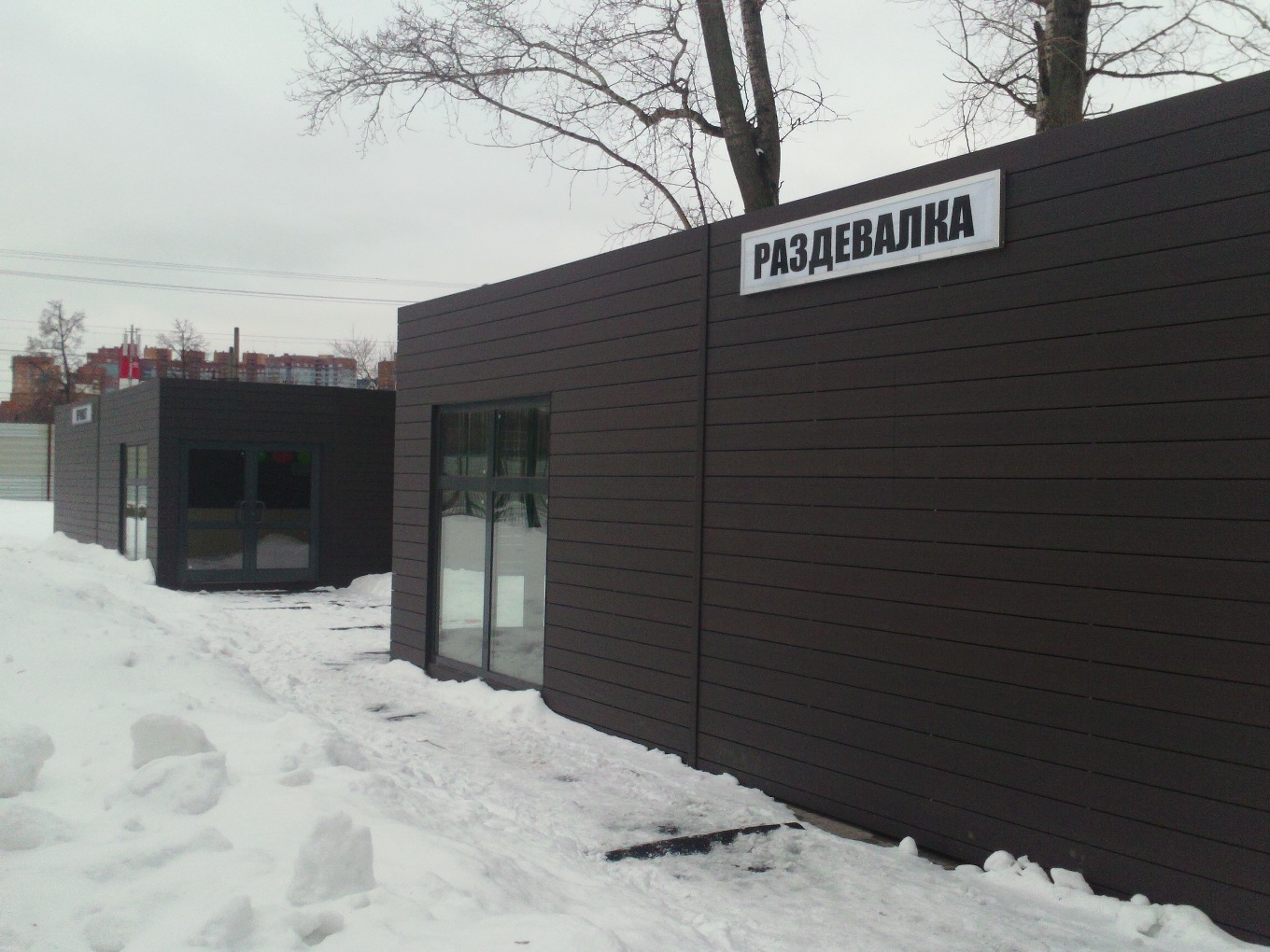 Возле спортплощадок поставили раздевалку, однако пока она не работает.