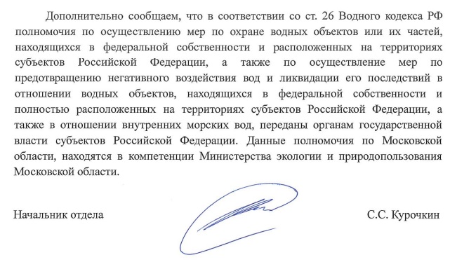Получается, что если сейчас кто-то продолжает сброс загрязнений в реку, то это происходит незаконно, и Министерство экологии Подмосковья обязано принять меры.