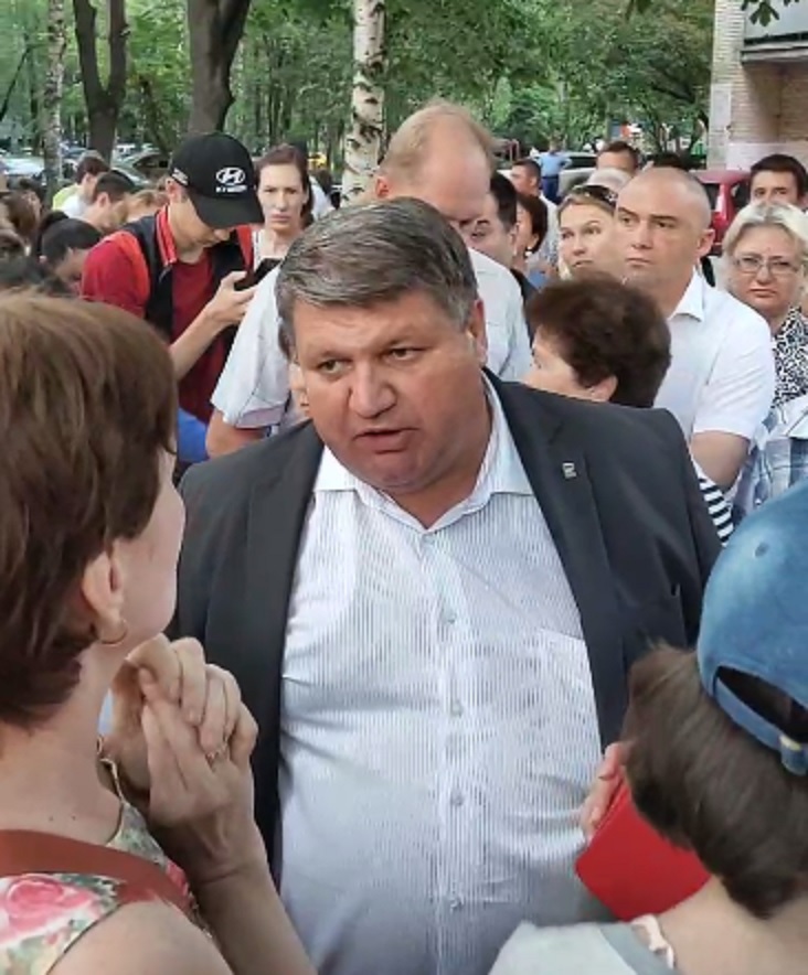 По неизвестным причинам глава Химок Дмитрий Волошин вновь не явился на собрание жителей, которые требовали его присутствия, и вновь прислал вместо себя заместителя - Игоря Панчука. Возбужденные люди, которых собралось несколько сотен, кричали и возмущались. А Панчук флегматично выслушивал всех и лишь иногда что-то невнятно отвечал.