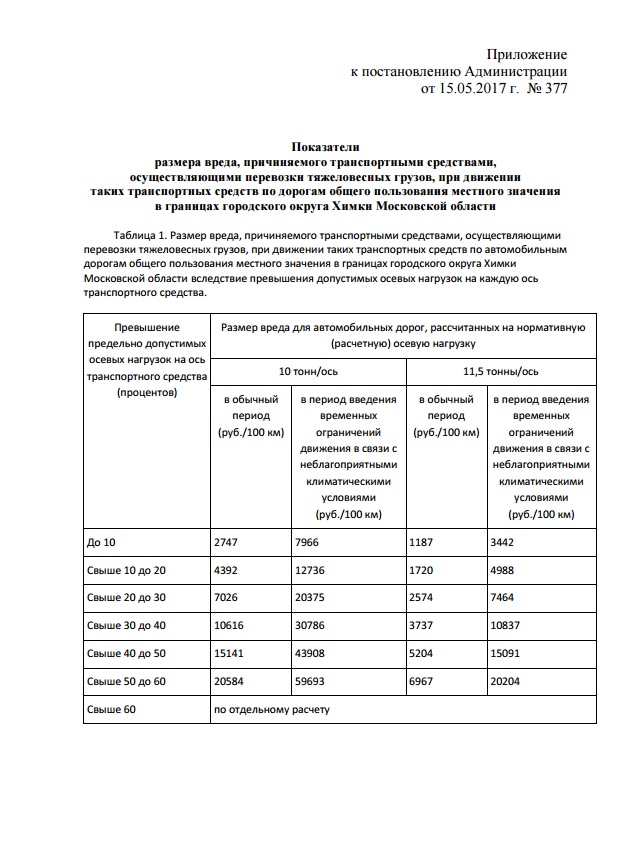 Во-вторых, выложено постановление главы Химок Дмитрия Волошина о причинении местным дорогам вреда от перевозки тяжелых грузов, где этот вред рассчитан в денежном выражении.