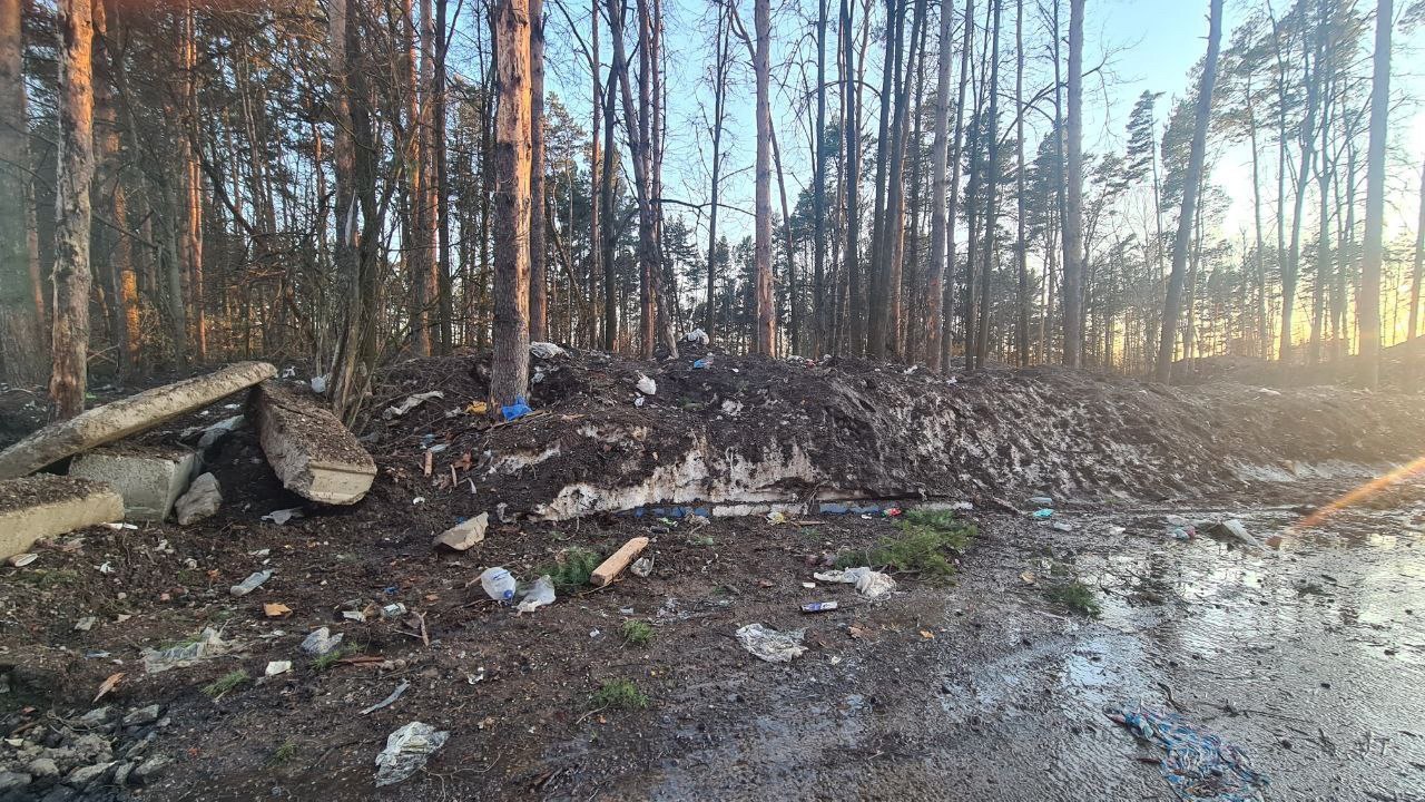 В Химкинском лесу после таяния снега, вывезенного из города при уборке улиц, обнаружились малоприятные "сюрпризы". Часть леса буквально превратилась в мусорные горы и холмы...