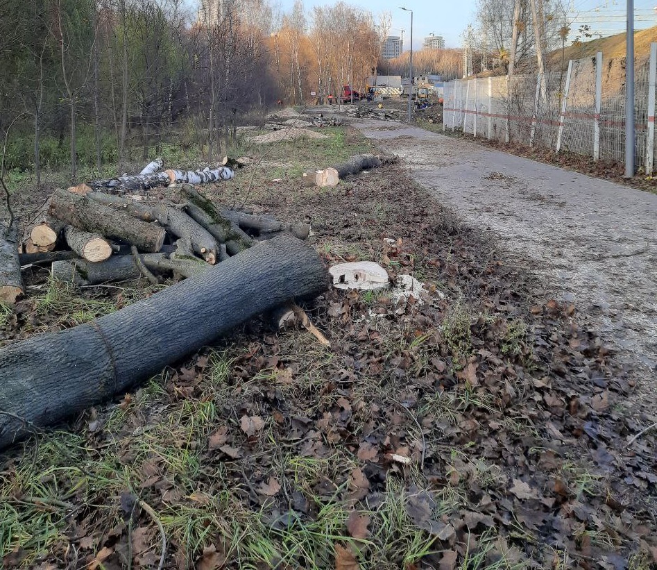 "Проект магистрали не прошел экспертизы, под вырубку <отдано> более 700 деревьев. Порубочные билеты отсутствуют. Жители уже получили стройку под окнами, идет уничтожение парка ради платной дороги для Москва-Сити".