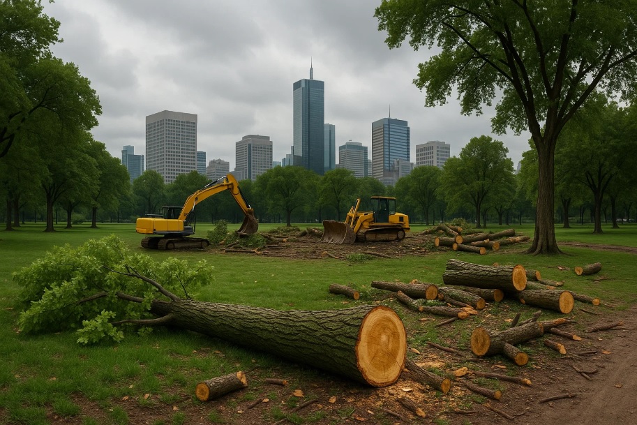 Если посмотреть на Москву не с уровня асфальта, а чуть повыше — скажем, с балкона последнего этажа или хотя бы из окна маршрутки — видно, что она совсем не такая уж каменная. Деревья, дворы, маленькие скверы, клочки старых рощ — всё ещё есть. Но чем внимательнее смотришь, тем больше замечаешь: тут техника стоит, там вырубили, а вон и ограждение натянули. Вчера было тихо, гуляли с детьми. Сегодня — грохот и табличка про «благоустройство».