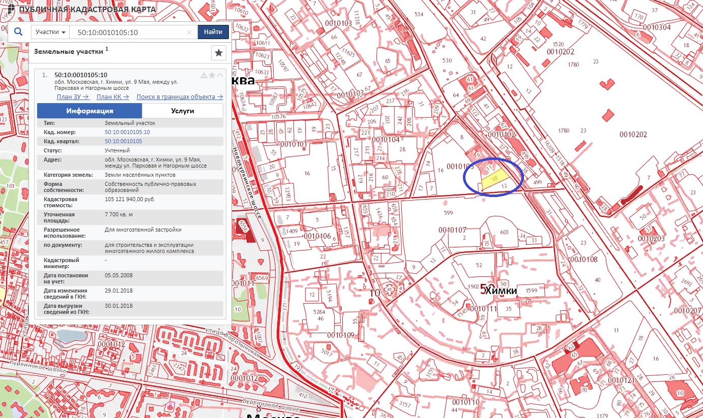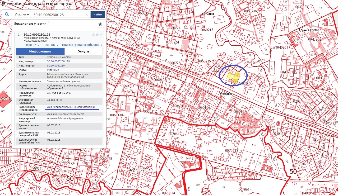 Интересно, что участок в Сходне, согласно Публичной кадастровой карте, предназначен для индивидуального жилищного строительства, а не для многоэтажек.