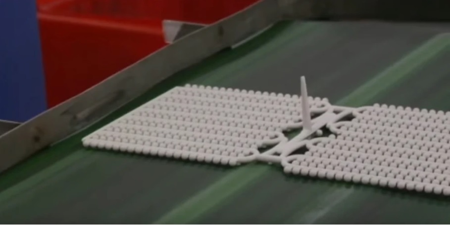 Сначала мешок с пластиком засыпают в специальный аппарат. Там масса разогревается под высокой температурой. Далее механизм отливает форму с множеством шаров. Они скреплены друг с другом. После шары отделяются от формы прессом. Затем маленькие патроны скатываются в отсек.