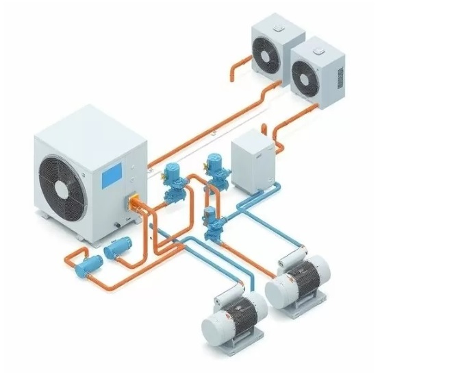 Двухтрубные системы. Работают в режиме «только нагрев» или «только охлаждение». Это классическое и экономичное решение для объектов, где не требуется одновременное поддержание разной температуры в разных зонах.