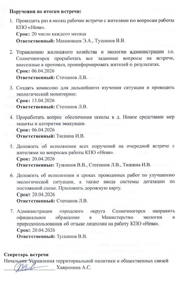 И вот что интересно - по результатам обсуждения администрации г.о. Солнечногорск было поручено направить в Минэкологии Московской области "обращение об отзыве лицензии у КПО "Нева".