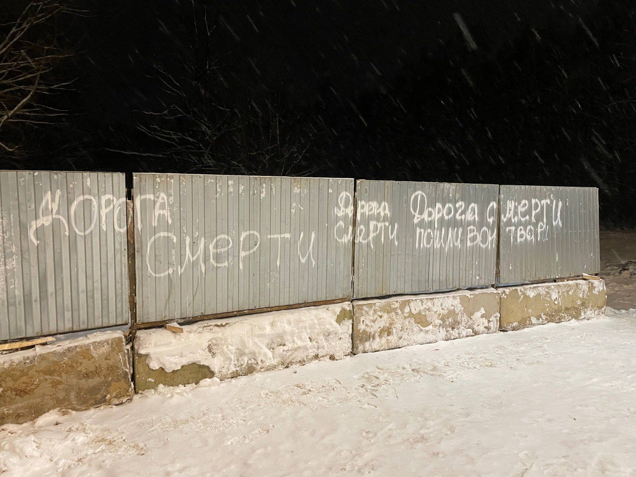 Кто-то из жителей уже от души "расписал" забор рядом со свежезапущенной дорогой, высказав таким образом свое мнение.
