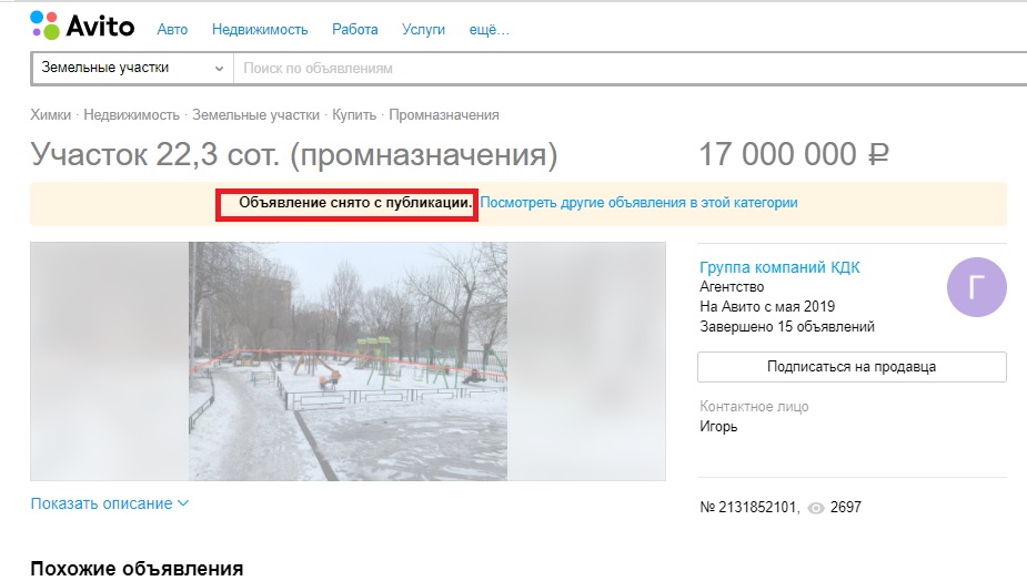 Наделавшее много шума объявление о продаже двора с детской площадкой и парковкой на ул. Маяковского в Химках в данный момент снято с публикации.