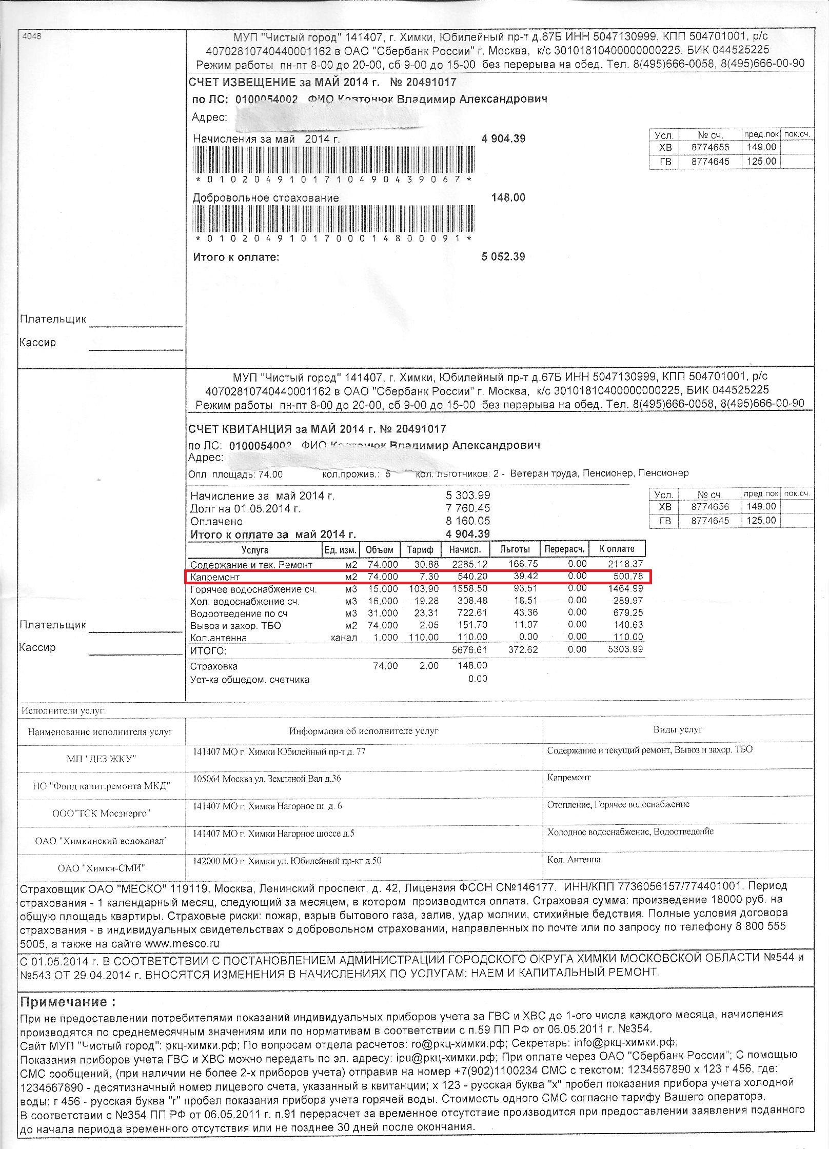 Химчане получили новую, майскую платежку за жилищно-коммунальные услуги. Теперь там появилась дополнительная строчка - капремонт, о которой мы писали ранее.