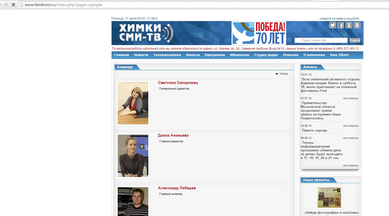 Хотя пока - на 17 июля, 17:00 - на сайте "Химки СМИ" список сотрудников по-прежнему возглавляет Запорожец.