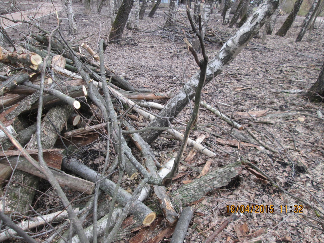 Несмотря на то что начало вырубки сухостойных деревьев в химкинском парке "Дубки" было очень аккуратным и разумным, в данный момент - после ослабления общественного контроля за происходящим - отмечены случаи повреждения и даже гибели здоровых зеленых насаждений.