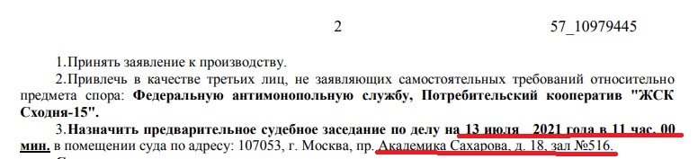Арбитражный суд Московской области принял данное исковое заявление к рассмотрению. Судебное заседание по этому делу назначено на 13 июля, 11:00, в зале № 516 (Москва, ул. Академика Сахарова, 18).