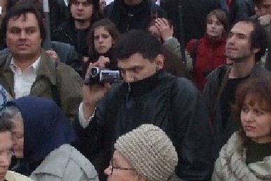 "А вот этот молодой человек с видеокамерой, тщательно прячущий лицо, - из химкинского телевидения.
