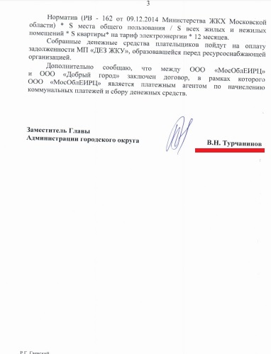 Замглавы Химок Виталий Турчанинов вновь повторяет, что платежи за ОДН по электроэнергии якобы не начислялись химчанам в 2016 году, и теперь эти "долги" добавлены в счета.