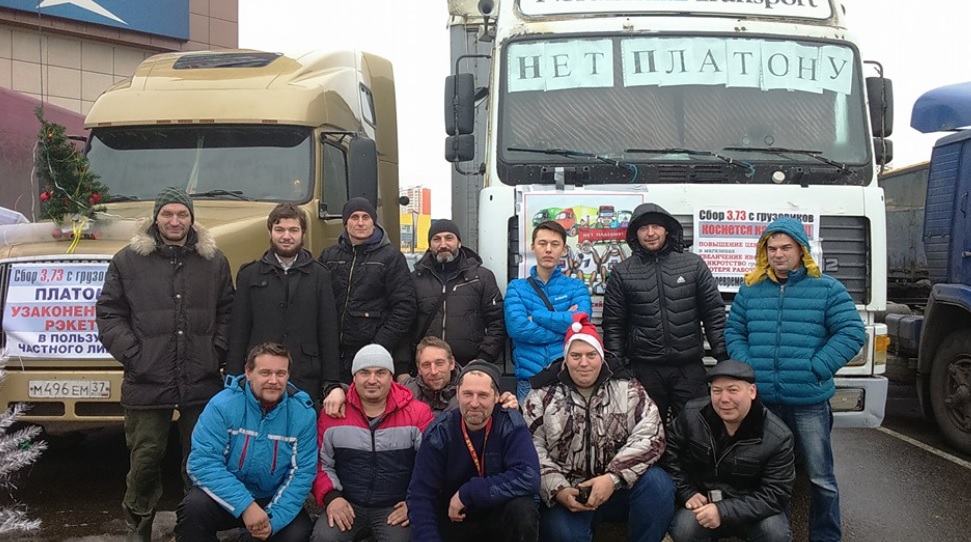 Акция протестующих дальнобойщиков в Химках. Фото: Facebook.com