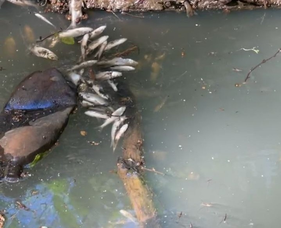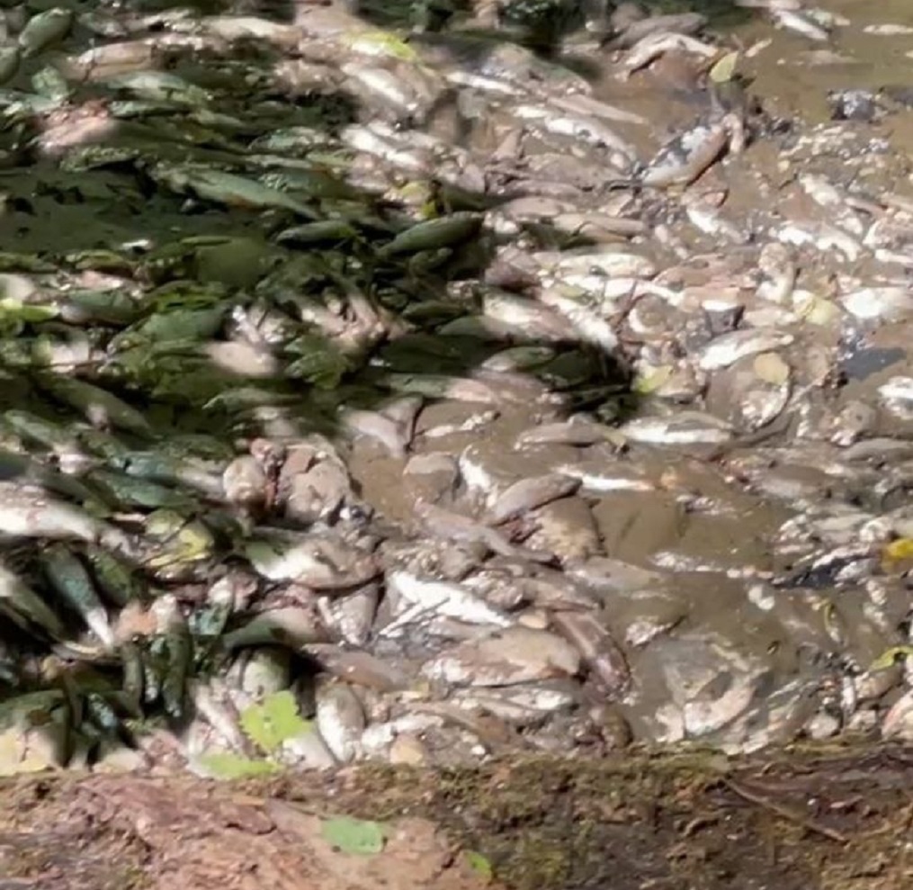 "Река была полностью резко слита. В результате сейчас берег покрыт дохлой рыбой, которая тухнет на жаре. Также в некоторых местах на поверхности видны следы черного вещества, похожие на мазут (вероятно, сливы). Уничтожена вся экосистема реки, вред огромен!" - делятся балашихинцы.