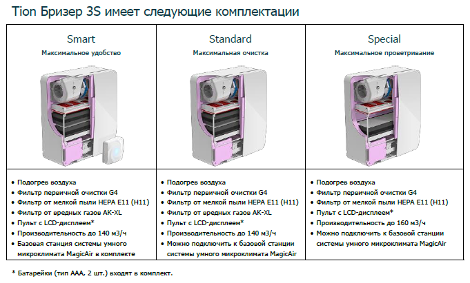 - Tion 3S Standard. Максимальная очистка воздуха;