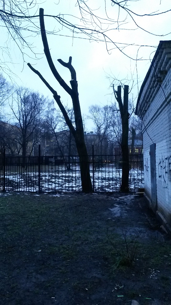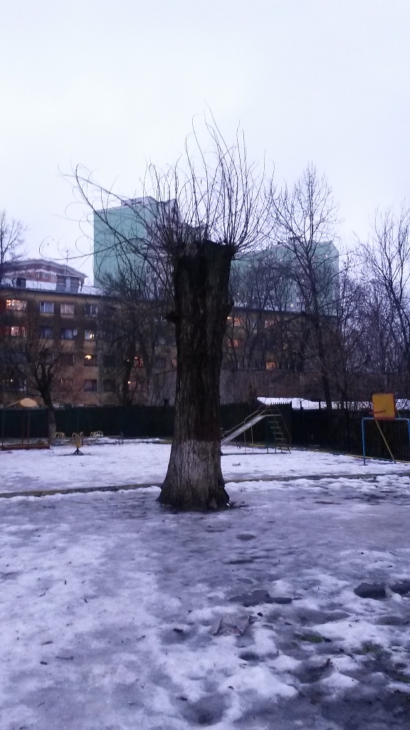 Вчера мы уже опубликовали фото, сделанные на площадке перед домом 4/13 на углу улиц Бурденко и Чкалова в Старых Химках. Там "озеленители" Комбината по благоустройству - как предполагают жильцы, для последующей застройки - методично уничтожают деревья. В число способов, которыми это делается, входит обрубание практически всех здоровых веток, после чего от дерева остается обрубок.
