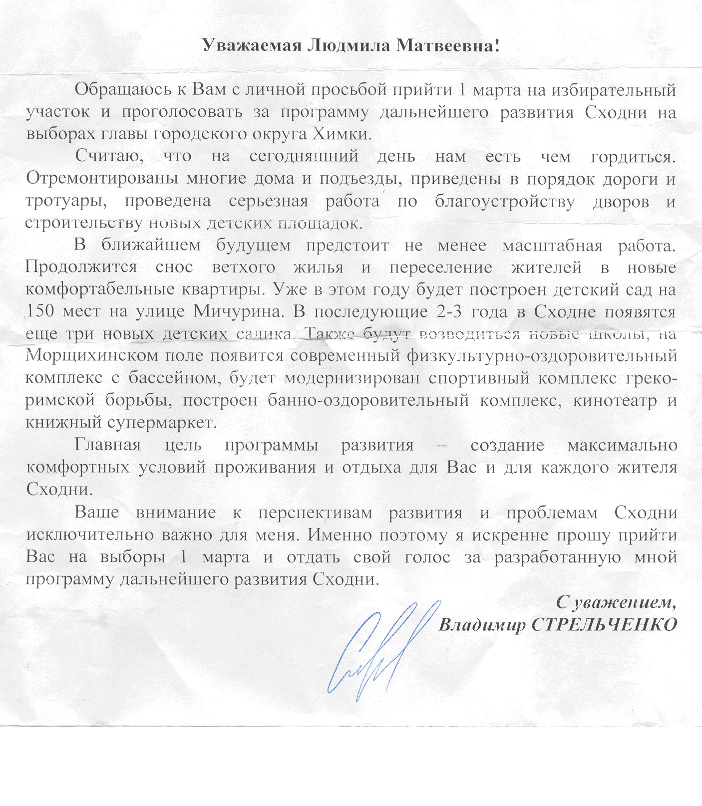 Однако Стрельченко сразу же после выборов отдал Морщихинское поле под застройку коммерческими объектами недвижимости, а затем отбыл из Химок в неизвестном направлении. Шахов, отбыв в известном направлении, сложил полномочия.