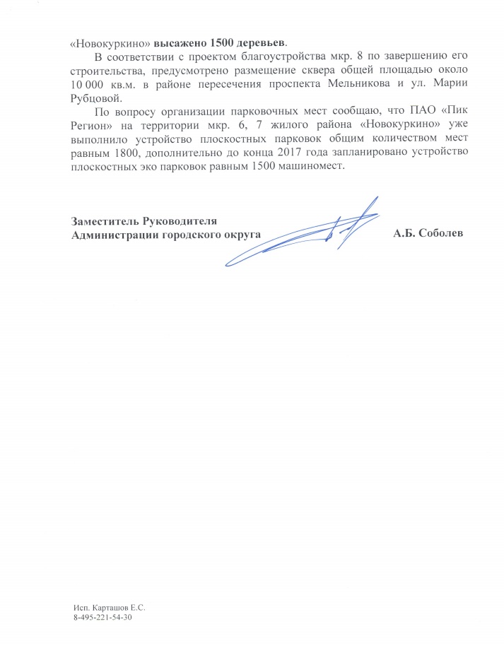 На собрание пришли в общей сложности порядка 50 человек, которые подписали обращение к губернатору Московской области Андрею Воробьеву и руководителю администрации г.о. Химки Владимиру Слепцову. Они указали в письме на острую нехватку парковочных мест и озеленения и переизбыток торговых площадей в районе и призвали отменить строительство магазина. Данную территорию нужно отдать под стоянку для машин, считают жители, тем более что это им прямо обещала химкинская администрация.