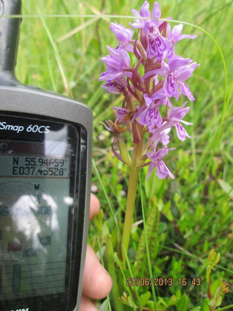 Едва начав обследование болота, мы сразу нашли первый редкий вид - "орхидею пальчатокоренник мясо-красный" из Приложения 1 к Красной книге Московской области.