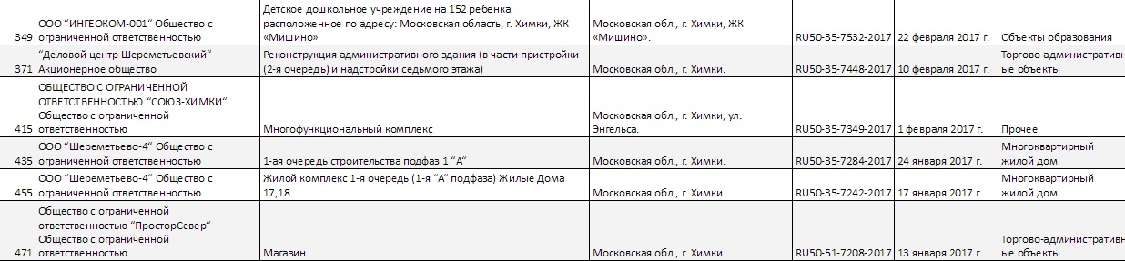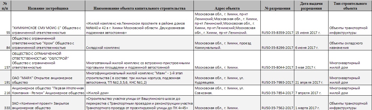 Последние из выданных разрешений найденные на сайте Минстройкомплекса химкинскими активистами: