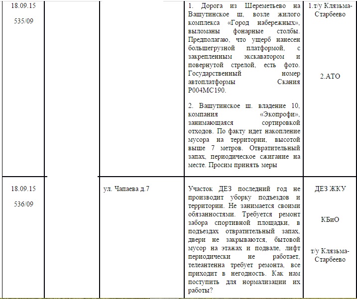 Среди вопросов, волнующих жителей г.о. Химки и отправленных ими на "горячую линию" администрации, следует отметить постоянный запах гари в Новых Химках. Об этом жители уже неоднократно сообщали и в "Экооборону". Также повторяется вопрос про платную парковку на ул. Лавочкина и вырубку деревьев.