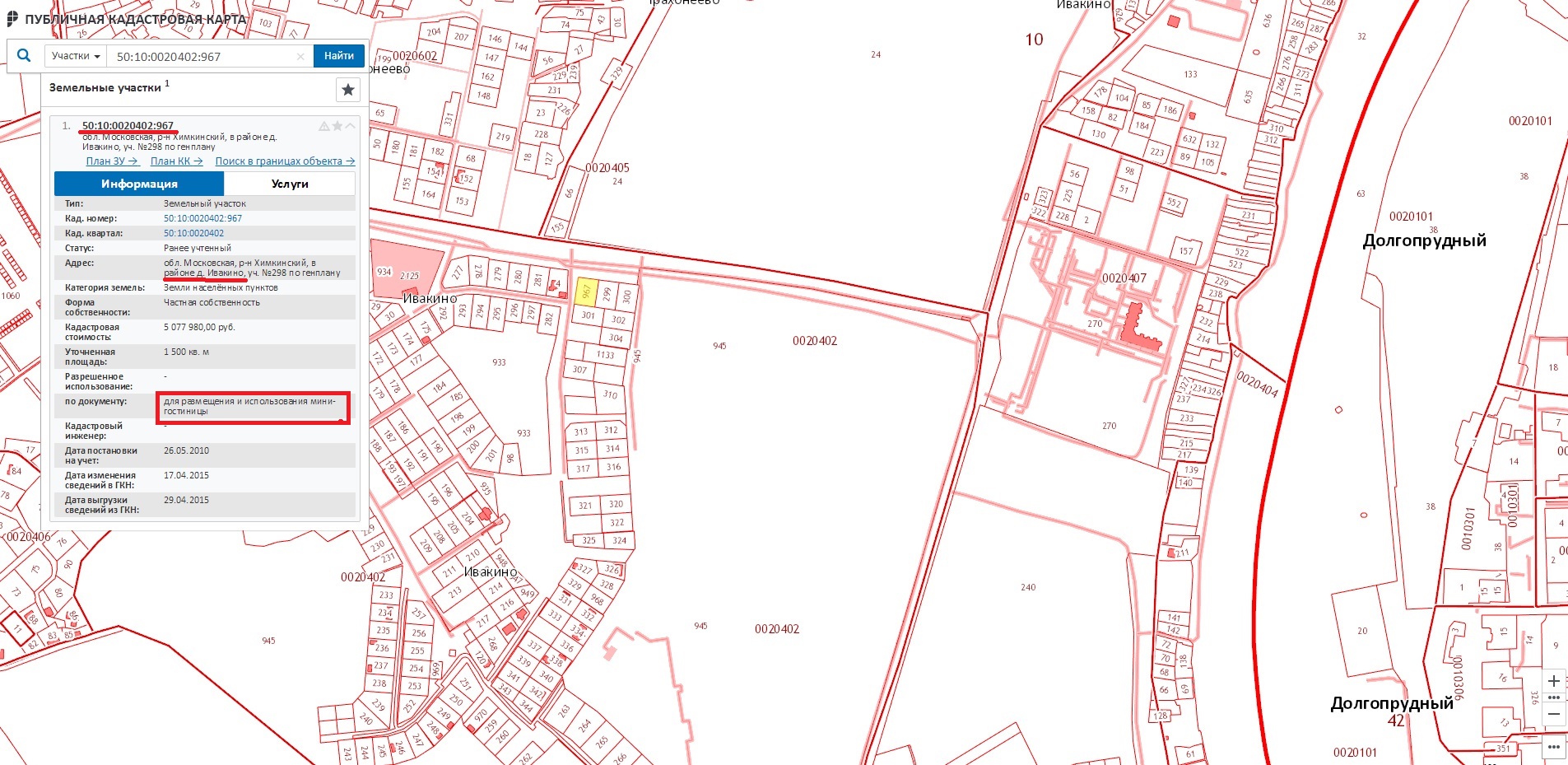 Первый участок находится в квартале Ивакино, имеет площадь 1500 кв. метров и предназначен, судя по Публичной кадастровой карте, для строительства мини-гостиницы.