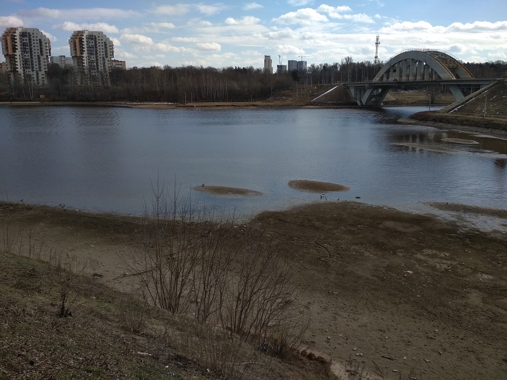 В прежние годы такого уровня Канала им. Москвы не было ни в марте, ни в апреле, когда там наблюдаются самые низкие показатели. В этом году вода "отступила" на несколько метров дальше, чем обычно. Стаи уток ходят по обширному, практически высохшему участку берега, который раньше был скрыт под водой.