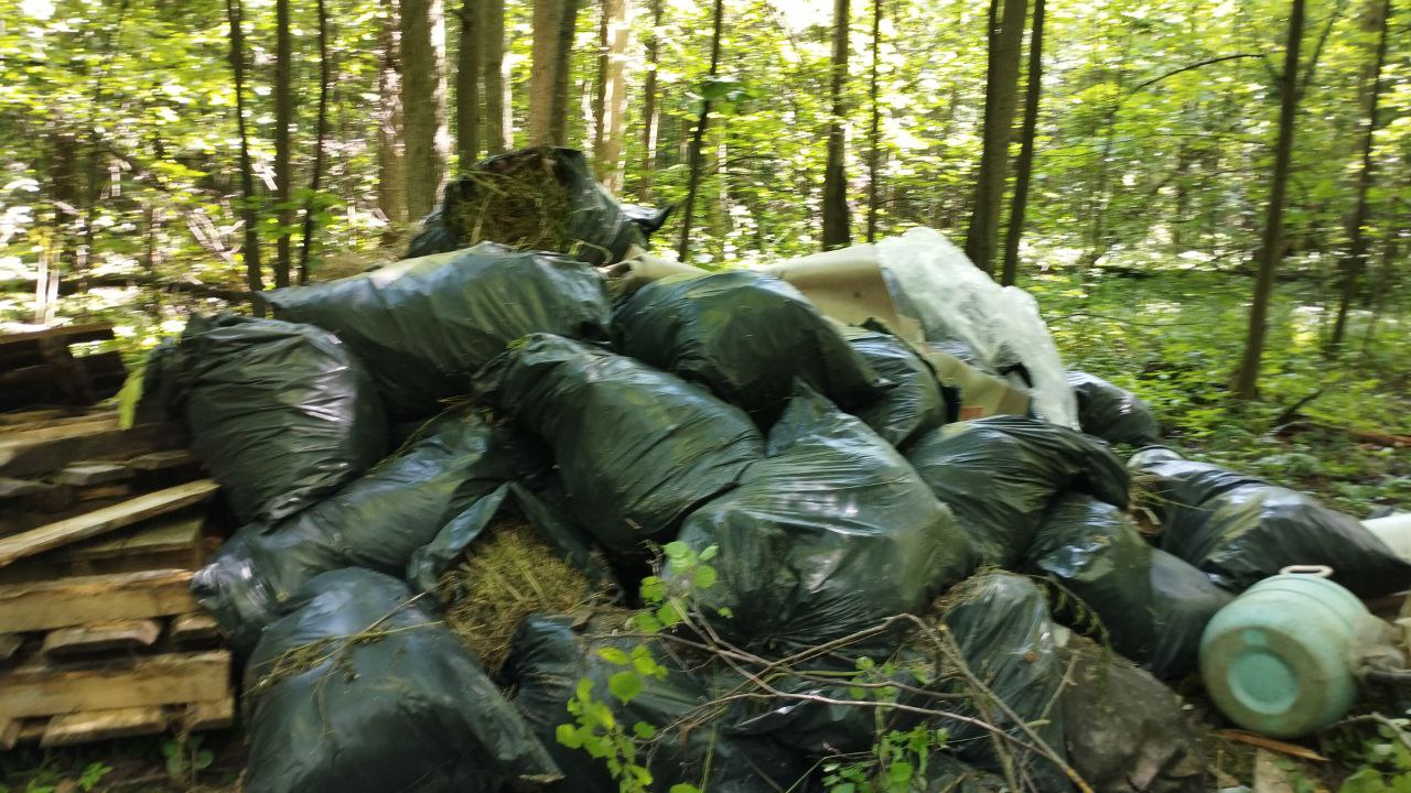 Грузовые машины вываливают мусор прямо в лесной массив рядом с деревней Чепелево в Чехове.