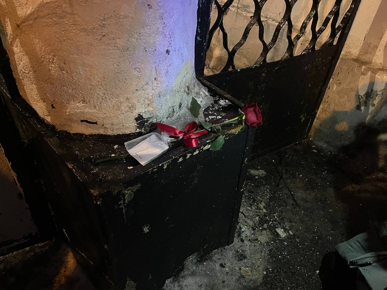 ЛЮДИ НЕСУТ ЦВЕТЫ В ПАМЯТЬ О ПОГИБШИХ ДЕРЕВЬЯХ