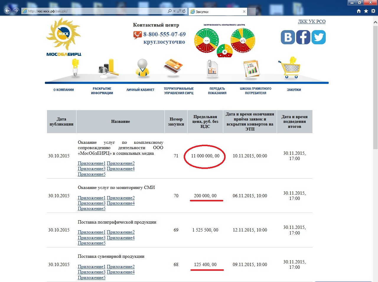 Подмосковные активисты обнаружили на сайте ООО "Мособлеирц" в разделе "Закупки" заказ на пиар-сопровождение деятельности организации стоимостью 11 млн рублей. Деньги пойдут на "комплексное сопровождение деятельности ООО "МосОблЕИРЦ" в социальных медиа, направленное на формирование благоприятного восприятия ООО "МосОблЕИРЦ".