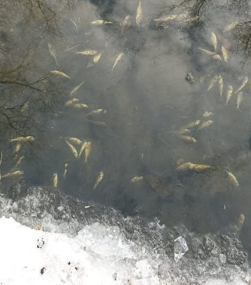 Они также прислали кадры с всплывшей к поверхности воды, хотя и еще живой рыбой.