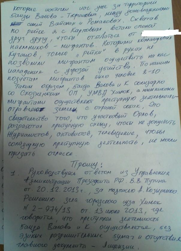 В процессе съемки активисты чуть не стали жертвами нападения со стороны работающих и проживающих на незаконном карьере мигрантов, которыми руководит ранее упомянутый нами Орифджан Куганов. По факту незаконной добычи песка, захоранивания опасного мусора, бездействия прокуратуры и полиции под покровительством химкинской администрации, а также вышеупомянутого нападения нелегалов Заляев и Карпов написали заявление в сходненское УВД.