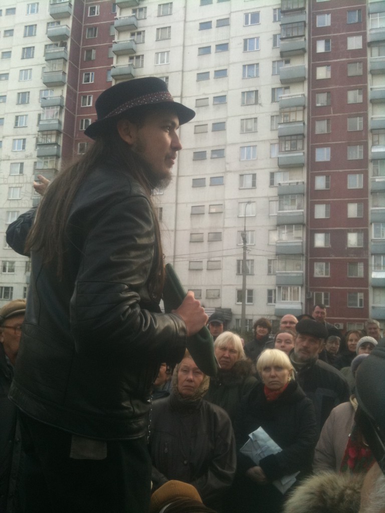 Сегодня, как мы анонсировали раньше, состоялось собрание в защиту сквера на ул. Дружбы. В нем приняли участие от 150 до 200 человек, включая защитников Химкинского леса - Евгению Чирикову, Сергея Агеева, Алексея Дмитриева. Были также активные защитницы с ул. Дружбы - Наталья Алымова и Людмила Юдакова, которую уже дважды самоуправно задерживала полиция Химок и которой присудили штраф 500 рублей за препятствование незаконным работам.