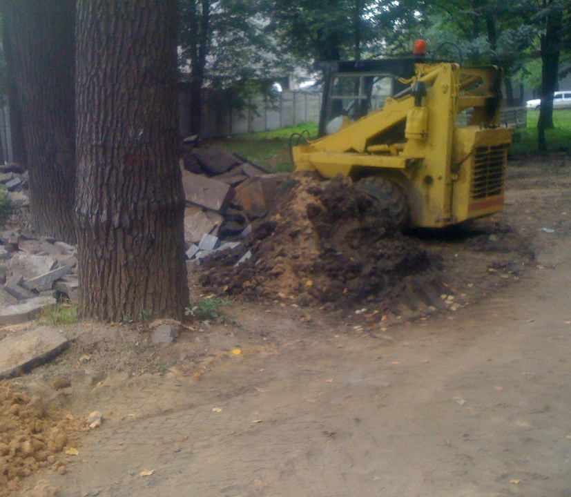 По всему парку идут "дорожные работы" - причем асфальтируют не только дорожки, но и тропинки, закатывая в асфальт и без того чахлую растительность. Запах этого действа через фотографию, конечно, не передашь...