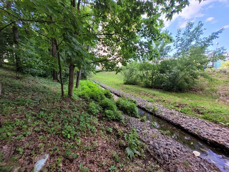 Дубрава на берегу Рылкова ручья чахнет и лишается своих обитателей по мере того, как все более активно выкашивается растительность, происходит вмешательство в природную среду плиткой и другими стройматериалами.