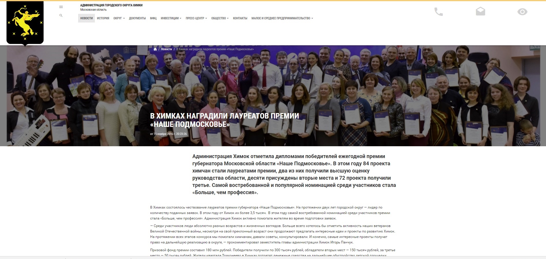 Защитники химкинского парка "Дубки" остались без премии "Наше Подмосковье". По крайней мере, победители конкурса уже известны, но сайт администрации г.о. Химки об активистах в числе лауретов не упоминает. При этом победителями стали 84 химкинских проекта.