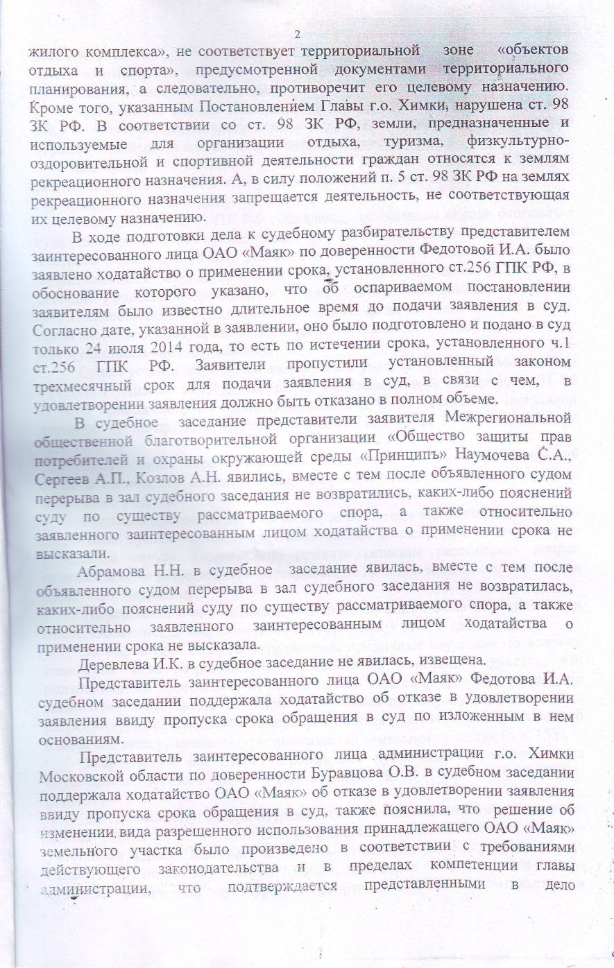Как мы уже сообщали, 29 августа судья Химкинского городского суда Юлия Миронова отказала в иске защитникам стадиона "Маяк" - представителям общества "Принципъ". (Напомним, что в "Принципъ" обратились жители, выступающие против многоэтажной застройки единственной в Химках общедоступной спортивной зоны, с просьбой защитить их права.)