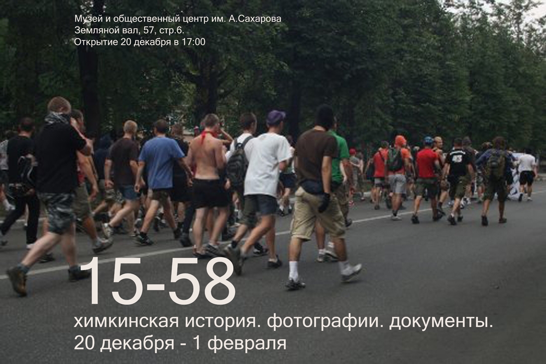 Выставка, которая пройдет с 20 декабря 2010 г. по 1 февраля 2011 г., в Музее и общественном центре им. А.Д. Сахарова, будет называться: "15-58" (Химкинская история. Фотографии. Документы). По адресу: Москва, Земляной вал, д. 57, стр. 6. Открытие - 20 декабря в 17:00.