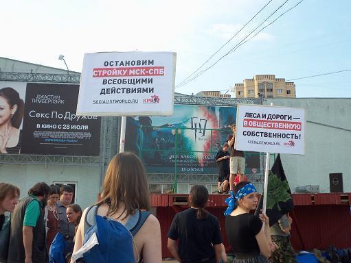 "28 июля 2011 года было объявлено об открытии экологического лагеря в защиту лесов Подмосковья, организованного анархистами, антифашистами, левыми и социальными активистами. Вечером этого дня прошел митинг в Зеленограде (анклав Москвы посреди Солнечногорского района Московской области) c требованием отменить реализацию проекта строительства платной трассы Москва - Санкт-Петербург через Химкинский, Солнечногорский и Клинский леса. Помимо участников эколагеря "Химки-2011" в митинге приняли участие жители Москвы, Химок, Солнечногорского и Клинского районов, а также гости из других районов Подмосковья - всего около 100 человек. На митинге выступили представители организаций - участников лагеря (либертарного движения "Автономное действие", Комитета за рабочий интернационал, радикально-экологического движения "Хранители радуги", Левого социалистического действия (также в открывшемся лагере участвуют представители российского социалистического движения и движения "Новые левые").