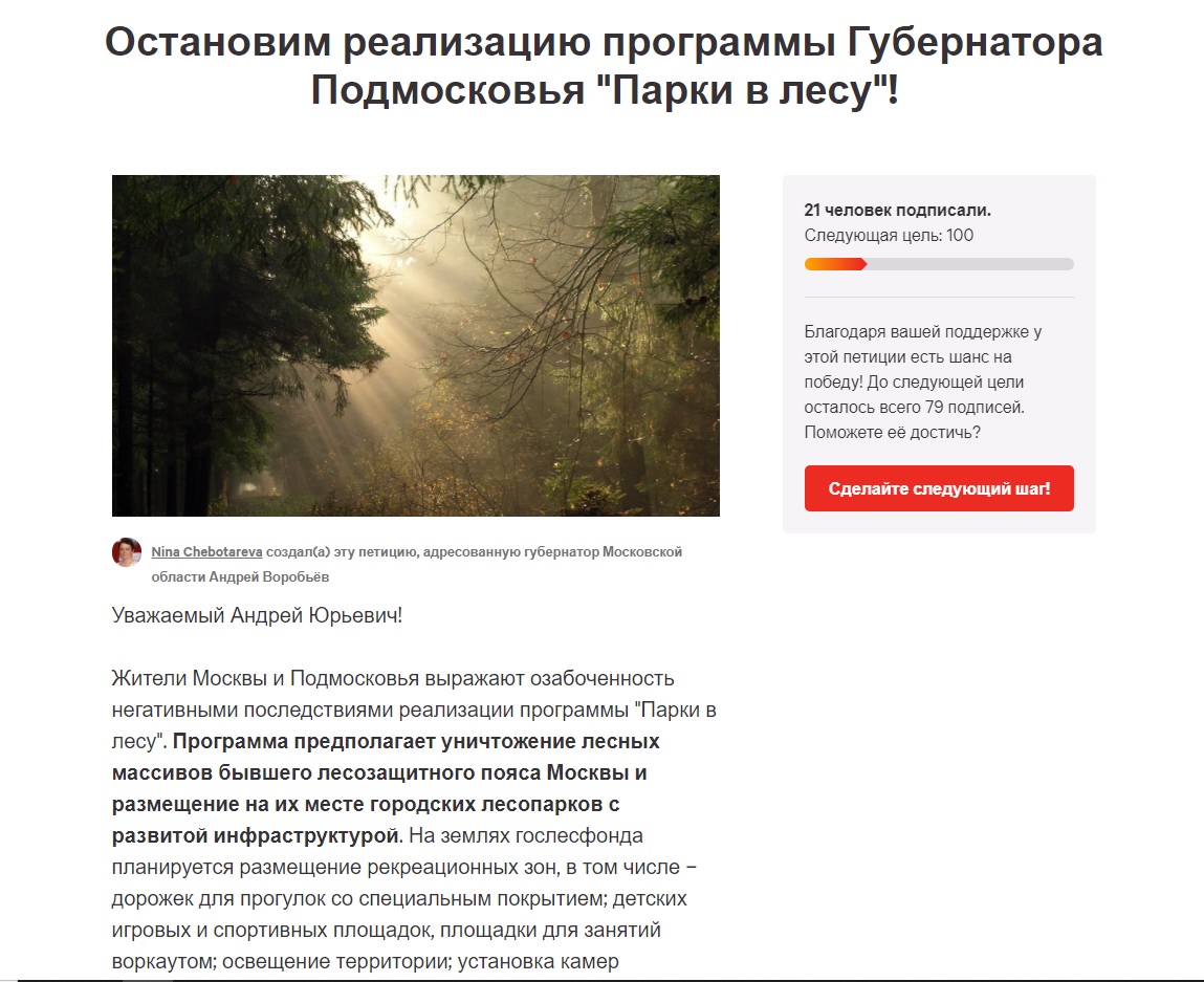 Стартовал сбор подписей против программы "Парки в лесах"