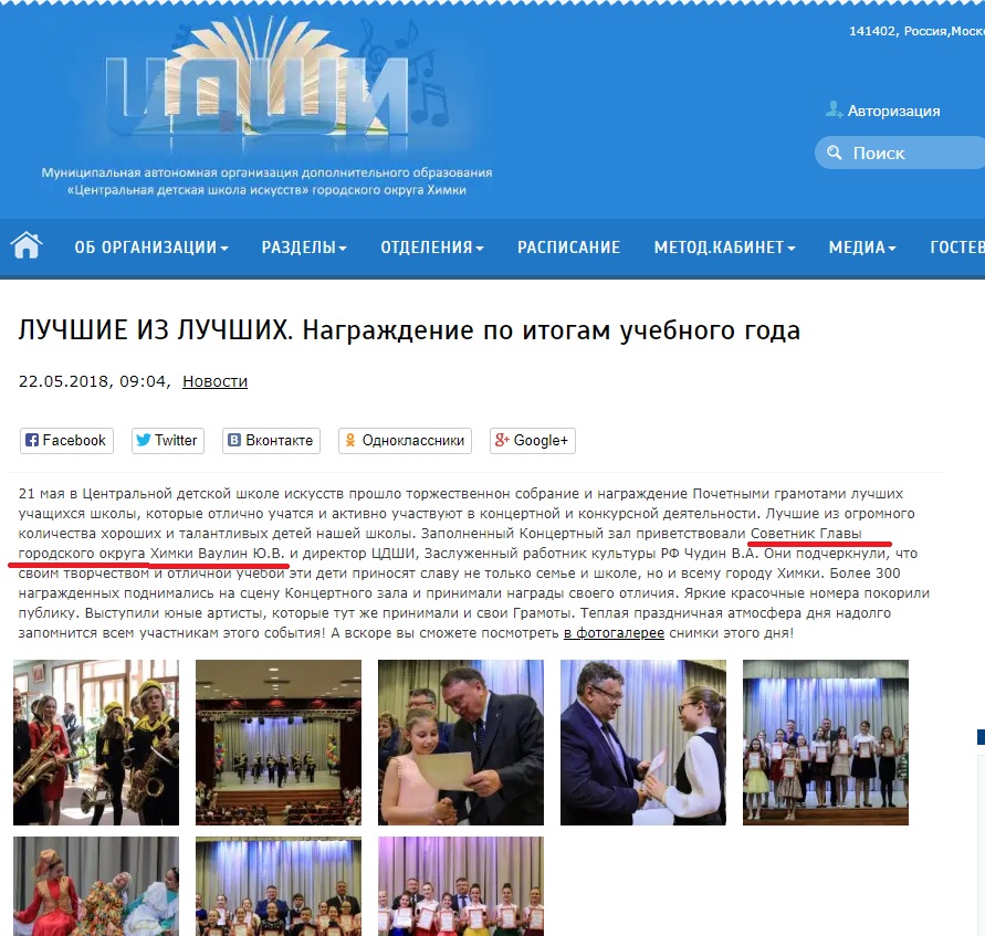 Юрий Ваулин - бывший заммэра Химок, ушедший с поста несколько месяцев назад, похоже, вновь появился в администрации. По крайней мере, на сайте Центральной детской школы искусств г.о. Химки он теперь фигурирует как советник главы Химок.