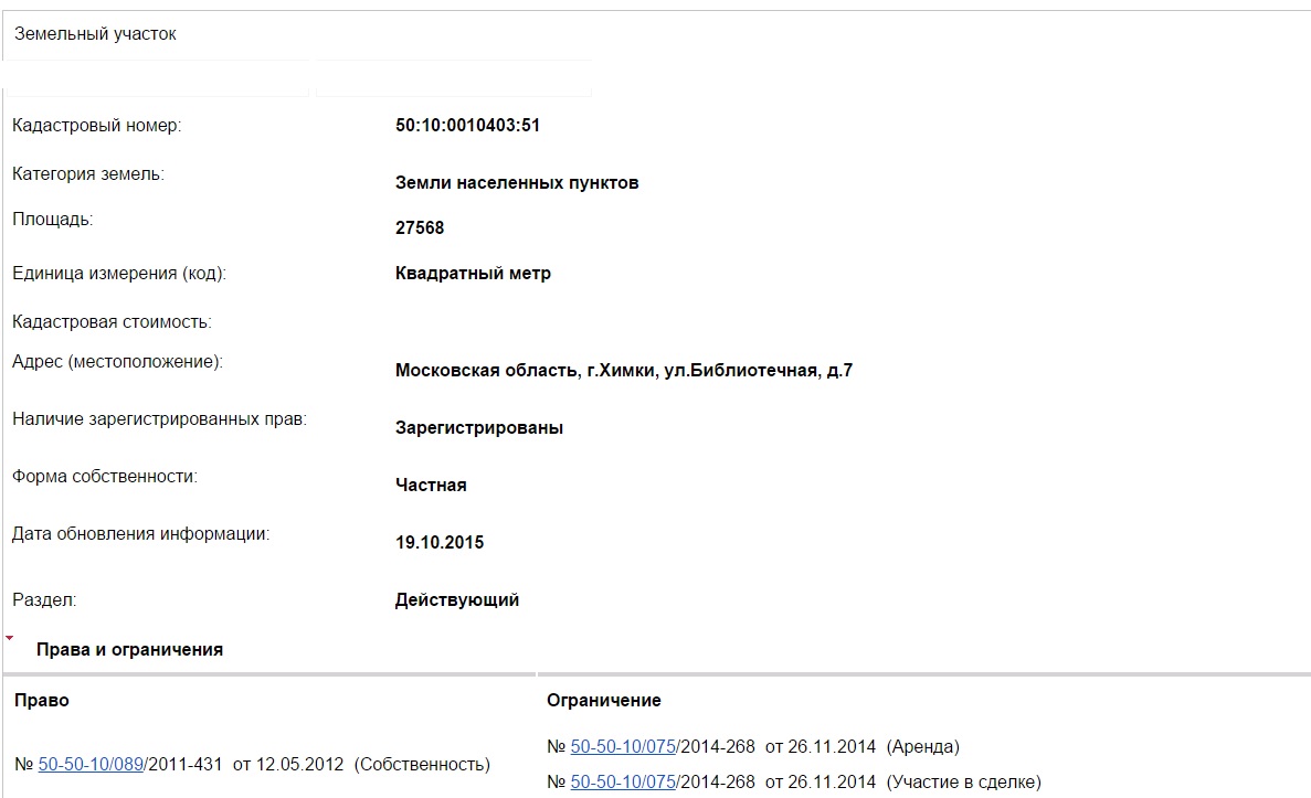 Кроме того, в июле 2014 года ОАО "Распорядительная дирекция Минкультуры России" оценивало рыночную стоимость объектов недвижимости на Библиотечной, 7, в том числе земельного участка.