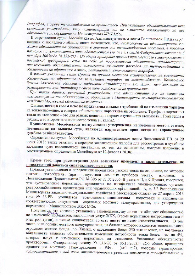 Активисты г.о. Химки продолжают бороться против "грабительских" тарифов и нормативов на отопление, которые в городском округе, по их мнению, завышены практически вдвое. Иск против местной администрации был удовлетворен Химкинским городским судом, однако Мособлсуд отменил это решение. Тогда жители подали жалобу в Верховный суд РФ.